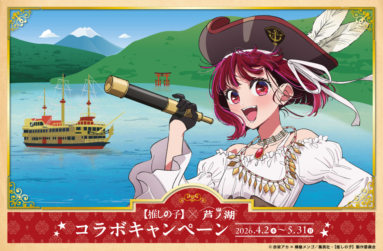 【推しの子】の人気キャラクター有馬かなの海賊船船長就任(エイプリルフール企画)を記念して、 「【推しの子】×芦ノ湖」のコラボイベントを開催中♪