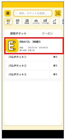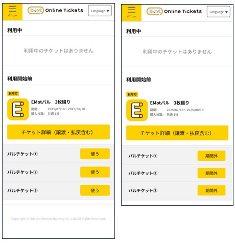 開催日前日までに購入すると「期間外」と表示され当日になると「使う」に切り替わります。
