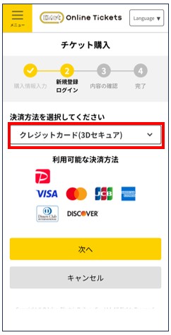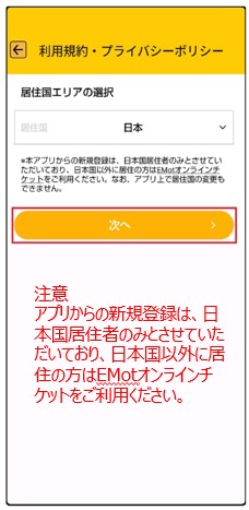 購入する券種を選択し規約同意欄にチェックを入れ、「次へ」をタップ。