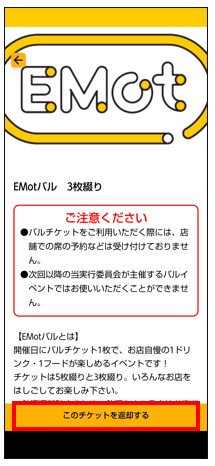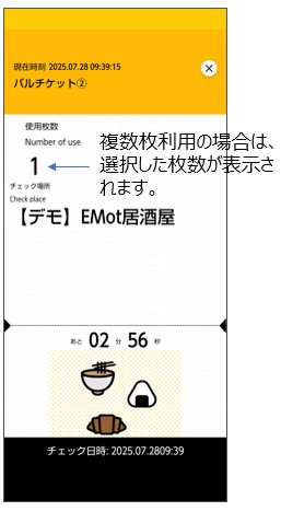 カウントダウン終了までにチケット券面を店員へ提示し、バルメニューの提供を受けてください。