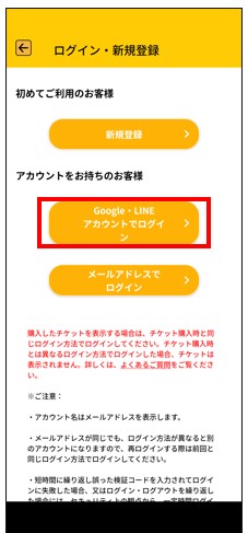 ご利用予定のアカウントをお間違えのないようご注意ください。