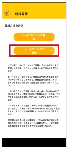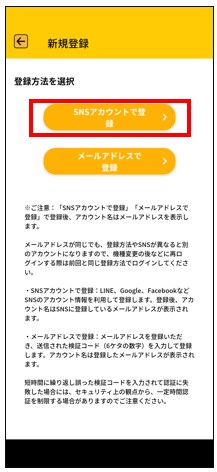※登録後、トップ画面に戻ってしまったら左上「メニュー」→「アカウント情報確認・変更」をタップしてください。