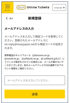 キャリアメール側のフィルタにより検証コードメールが送付されない場合があります。