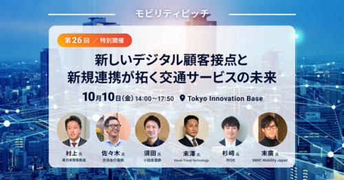 イベント「モビリティピッチ 第26回/特別開催『新しいデジタル顧客接点と新規連携が拓く交通サービスの未来』」を、