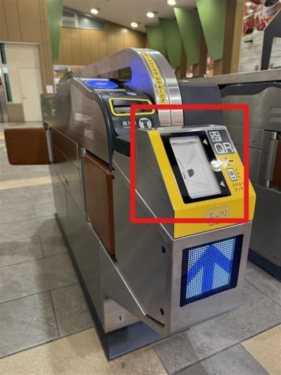 If you are using a ticket gate equipped with a QR authentication terminal, please hold the QR code over the reader area indicated by the red frame in the image on the left.