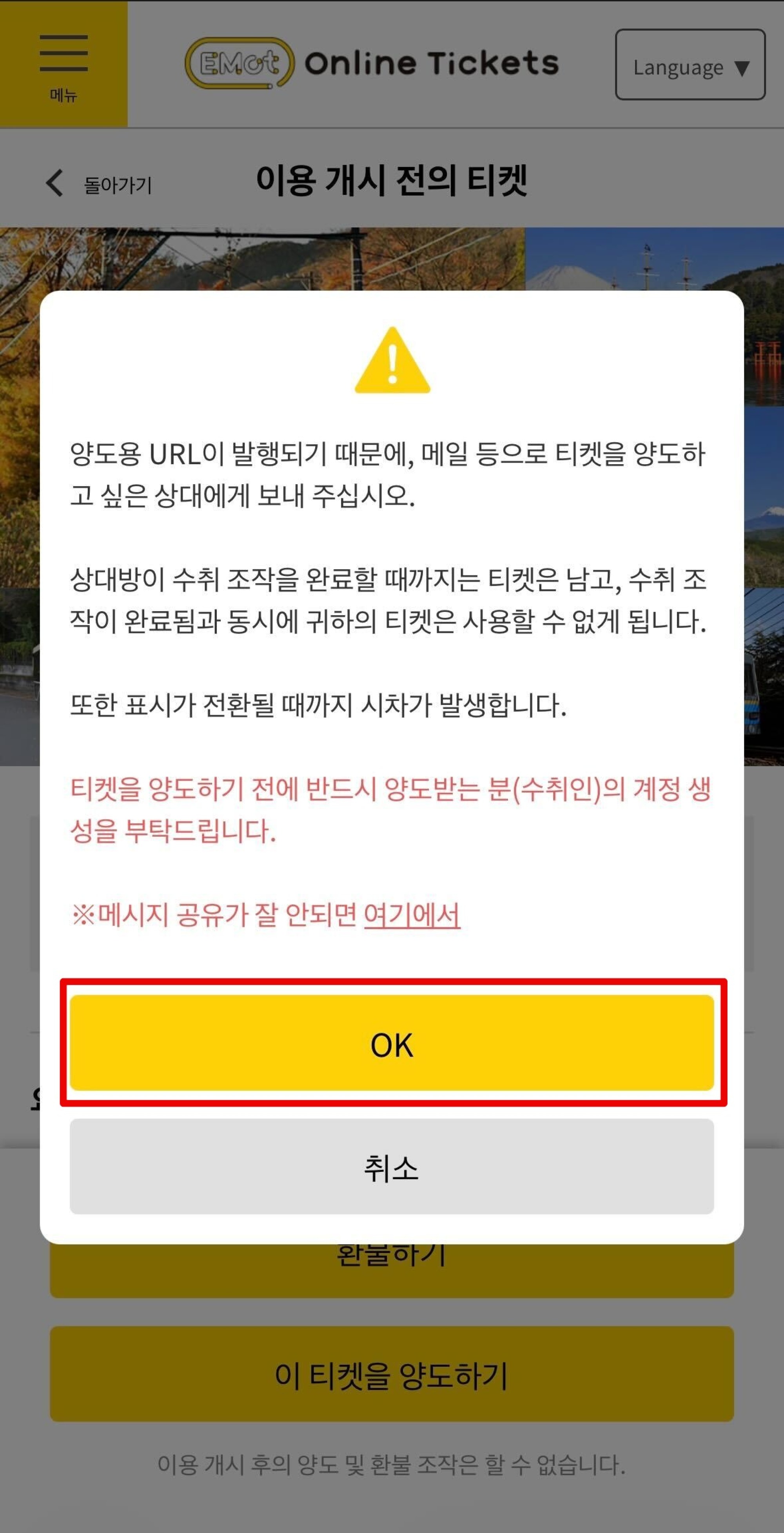 구매 방법이나 사용 방법이 위와 다른 티켓이나, 양도 기능이 없는 티켓이 있습니다. 반드시 각 티켓의 구매 상세 화면 등에서 확인해 주세요.