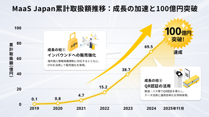 このたび、EMotを支える共通データ基盤「MaaS Japan」の累計取扱額が、2025年11月をもちまして100億円を突破いたしました。