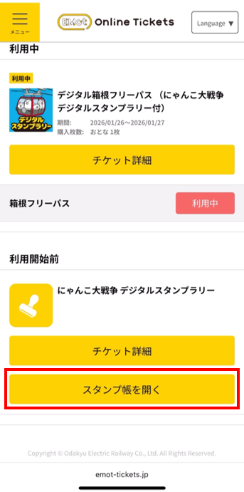 チケットをご購入いただいた直後は、スタンプ台紙はまだ付与されません。
