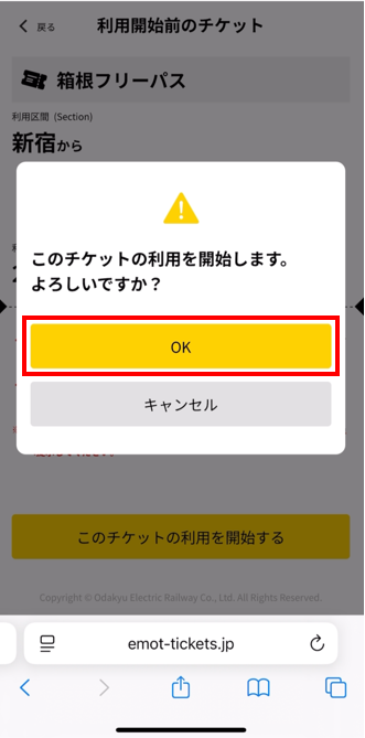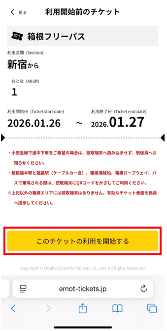 「このチケットの利用を開始する」を押す。