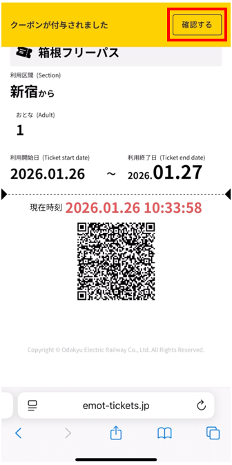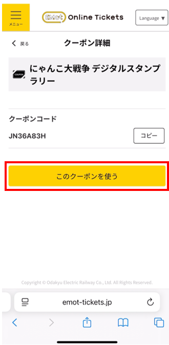 チケットの利用開始後にクーポンコードが自動で付与されます。
