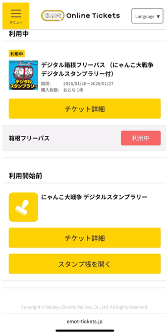 デジタル箱根フリーパスおよびスタンプ台紙は、複数枚同時利用はできません。
