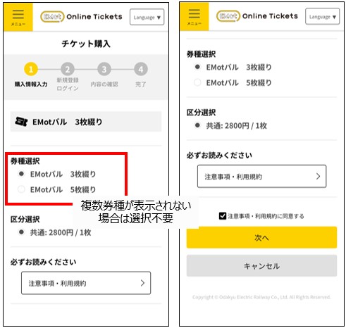 ※券種が表示されない場合は選択不要
