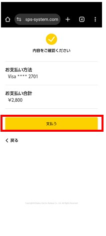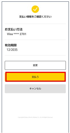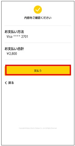 支払情報を確認し「支払う」をタップ。