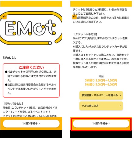 チケット説明文を確認し「購入手続きへ」をタップ。