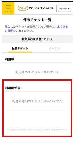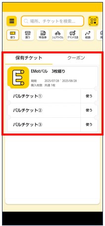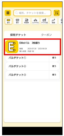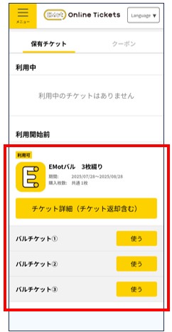 購入したチケットが表示。