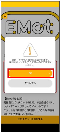 「このチケットを返却する」をタップ。