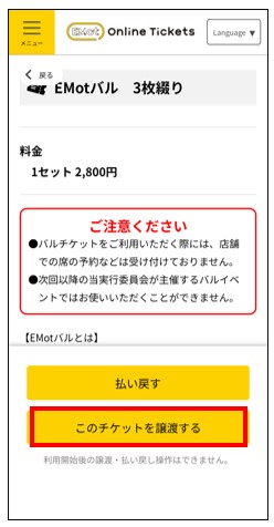 ※使用済みのチケットがある場合は譲渡ができません。