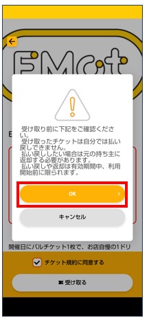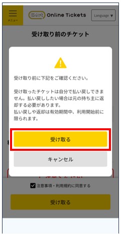 保有チケット一覧にチケットが表示されたら受け取り完了。