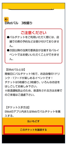 「このチケットを譲渡する」をタップ。