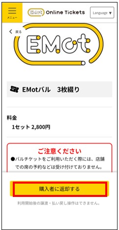 ■譲渡されたチケットを返却する場合