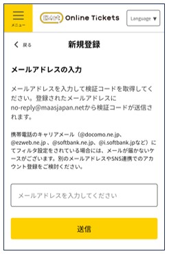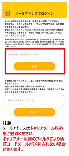 キャリアメール側のフィルタにより検証コードメールが送付されない場合があります。