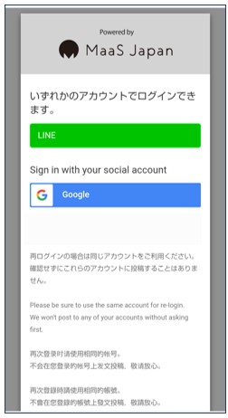 SNSログインに使用するアカウントを選択するとTOP画面に戻ります。次にアカウント登録情報スライド12へ。