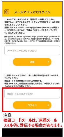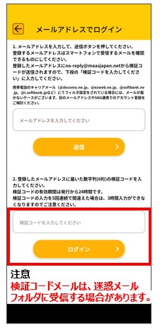 ・検証コードメールは、迷惑メールフォルダに受信する場合があります。