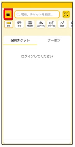 ログイン後、左上メニューボタンをタップ。