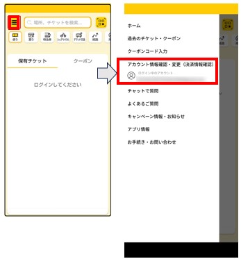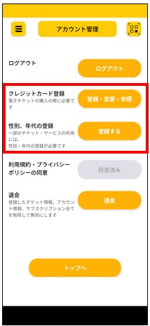 ※登録後、トップ画面に戻ってしまったら左上「メニュー」→「アカウント情報確認・変更」をタップしてください。