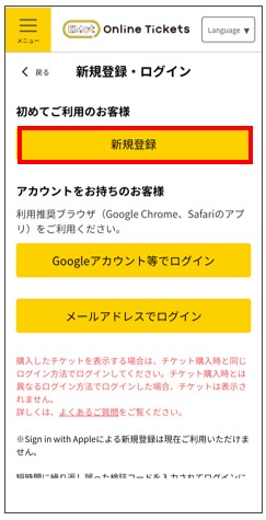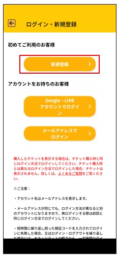 「新規登録・ログイン」をタップ。