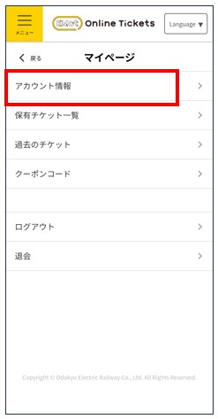 「アカウント情報」をタップ
