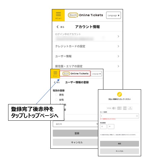 クレジットカードの設定、ユーザー情報を登録。
