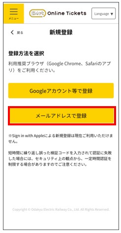 「メールアドレスで登録」をタップ。