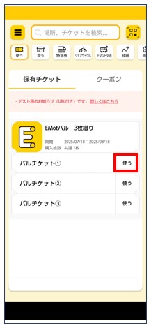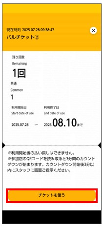 チケットが表示されたら「使う」をタップ。